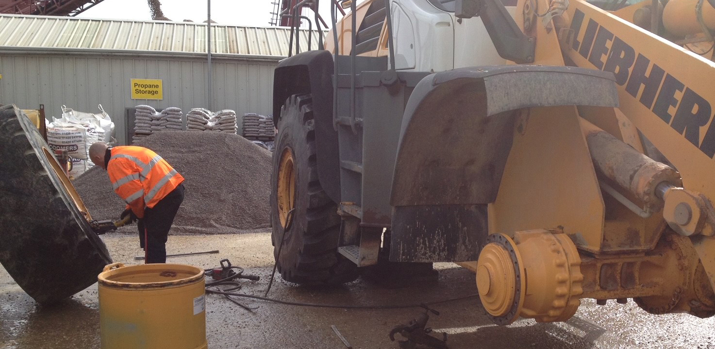 Puncture repairs to plant OTR tyres are sometimes referred to as cold cure repairs. Our specialist service vehicles are equipped to perform puncture repairs on site.
